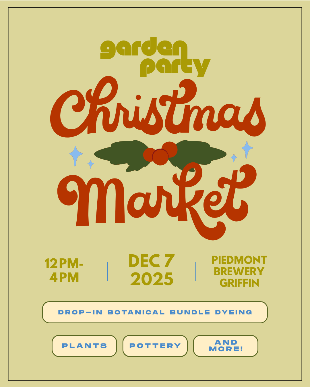 Come see me this Sunday inside the Brewery at Piedmont! I’ll have houseplants, succulent gardens, pottery, sun catchers and more! If you’re feeling crafty, grab a beverage from the bar and come bundle dye a cotton handkerchief, bandanna, or tea towel. These make perfect handmade gifts for you or a loved one! Afterwards pop over to East Solomon for the Mistletoe Market.