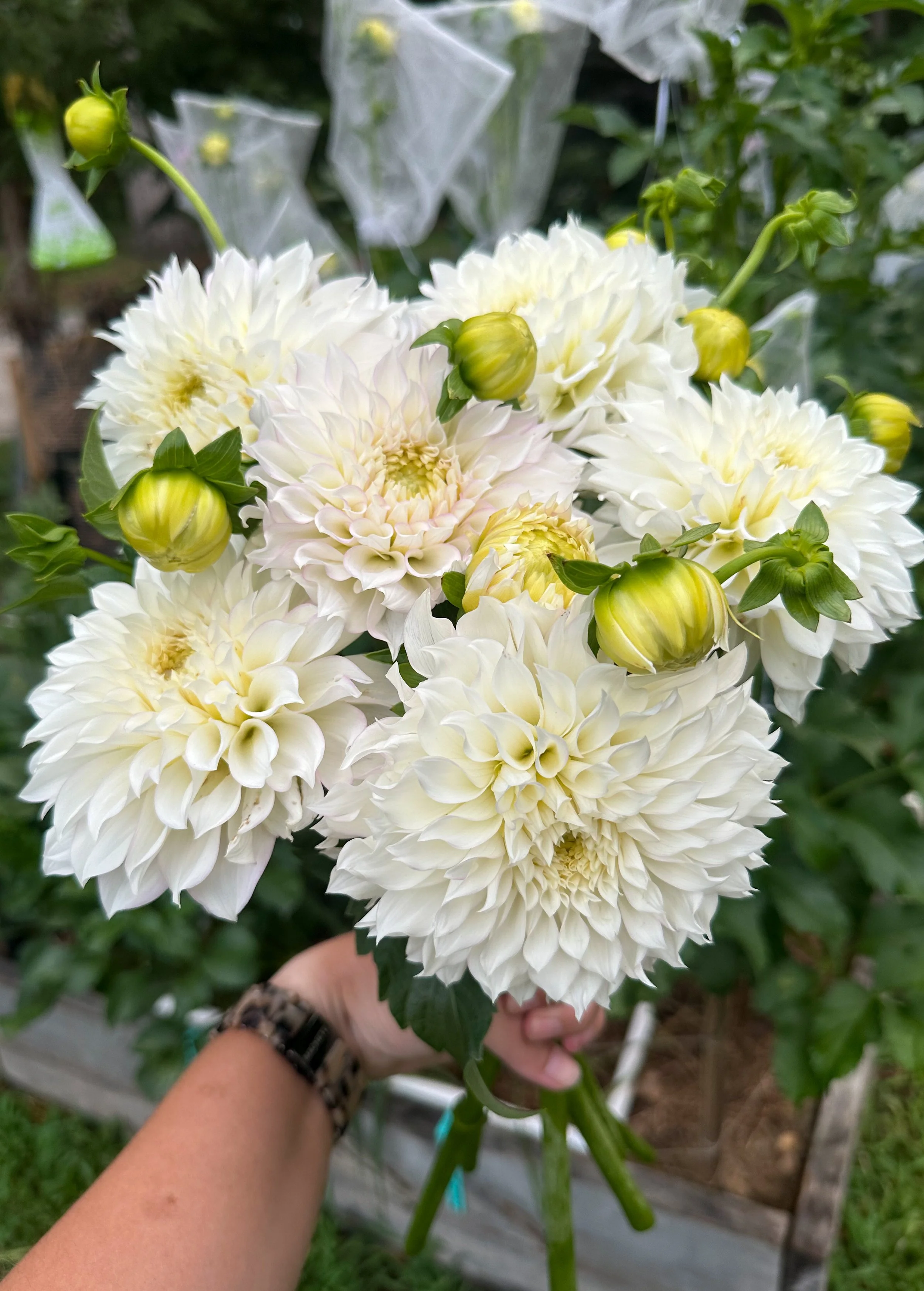 I’m Claire, Farmer-Florist and owner of Garden Party, an urban flower farm and ecological landscape design company nestled in the heart of Griffin, GA. As a third-generation landscape designer, I’ve had my hands in the dirt for as long as I can remember. My love for gardens and green spaces was nurtured early on through those childhood visits to plant nurseries, studying site plans spread across the dining table, and learning the art of planting with care. While my design philosophy has evolved from generations past, I’ve taken that foundation and applied it to sustainable flower farming by growing blooms in harmony with nature’s rhythms while minimizing our environmental impact. My work lives at the intersection of regenerative agriculture, ecological horticulture, and urban land management by combining deep-rooted traditions with a forward-thinking approach to land stewardship and my mission is to cultivate beauty while fostering connection with nature, people, and place.